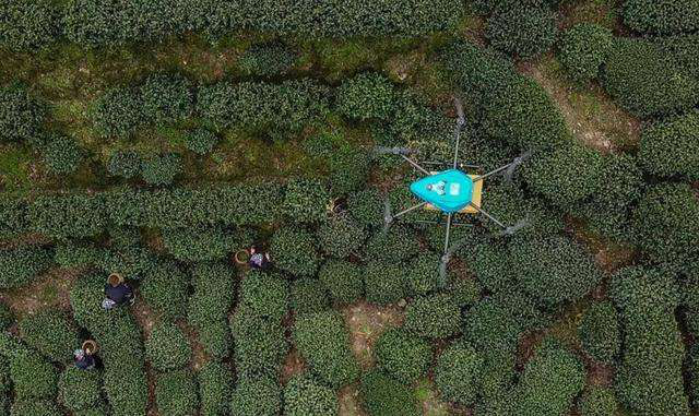 在今年的狮峰山茶树采摘过程中,出现了这样的一幕:菜鸟无人机组成的飞行编队往返于狮峰山与炒茶中心之间,将新采摘下的狮峰龙井茶叶运输下山,随后开始摊晒、炒制,无人机的运用大大提升了采茶的效率,保证了茶叶的质量。