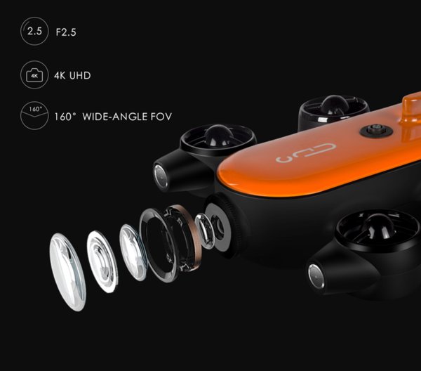 泰坦造型亮眼,机身设计有六个提供强劲动力的推进器,满足了深海探索的深度需求,可下潜至水下150m;并且结构设计从根本上解决了水下无人机易遇到的抗流性差,及操控感及稳定性不佳的常见问题。