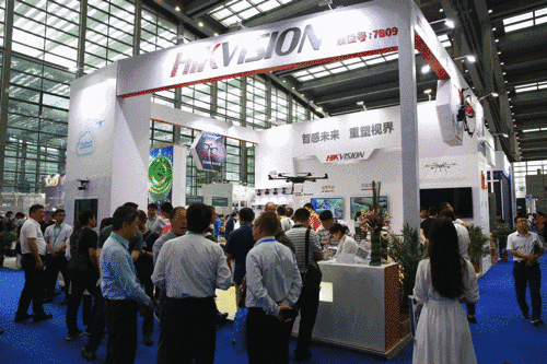 展台中央,首次发布的新款海康威视系留系统通过支架悬浮于上空,格外吸睛。
