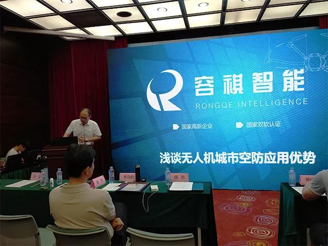 在各省市局专家领导演讲后,容祺智能作为企业代表第一个上台演讲,与参会人员分享《无人机在城市空防中的应用优势》。
