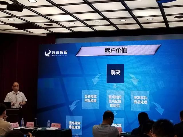 在分享过程中,容祺智能市场部负责人从现有城市安防体系到未来的城市空防应用方案,逐层分析,由浅入深,引起了全场人员的共鸣。同时方案中指出未来可以进行全面的、立体的、多维度的城市安全防范,通过无人系统与空防应用,将横向结合警务信息化、消防信息化、网络信息安全,并且提升智慧感知、数据分析、集成和应对,将为政府构建一个更高效的城市运营管理环境。