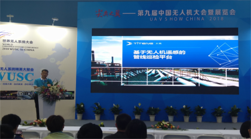 在本次展会技术交流论坛上,天腾航空董事长韩恒刚做了题为《TiTENG—基于无人机遥感的石油石化管线巡检平台》的演讲,讲解了天腾航空在石油管线巡检行业的相关应用和创新,为广大观众带来了一场精彩的技术交流体验。