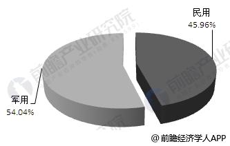 无人机在中国的起步较晚,且开始于中国军用领域。2014年,中国无人机行业贡献度主要以军用无人机为主,贡献率高达90%,而民用领域则仅占10%左右。但民用领域的需求规模在近两年得到较大的释放,尤其是2016年,无人机在消费级以及工业级得到了消费者以及行业客户的认可,并部分实现了规模化生产,民用领域无人机规模陡升,增速在50%-70%之间。截止到目前,我国无人机领域的市场结构虽仍以军用为主,但民用无人机势头正盛,占比也已经达到了46%左右,未来,行业市场结构仍将不断改变,民用无人机超过军用无人机贡献率指日可待。