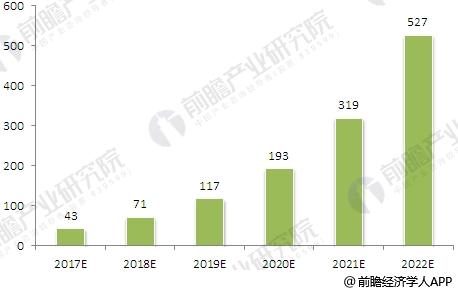 2017-2022年中国工业无人机行业规模预测(单位:亿元)