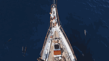 研究人员会蛰伏在鲸出没的海域,在发现目标后,从半英里外的船只上操控无人机接近,等鲸浮出水面呼吸喷水时,用无人机飞抵上方,采集水柱上的鼻涕。