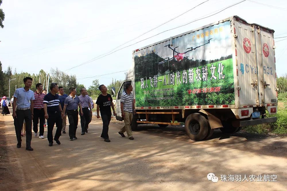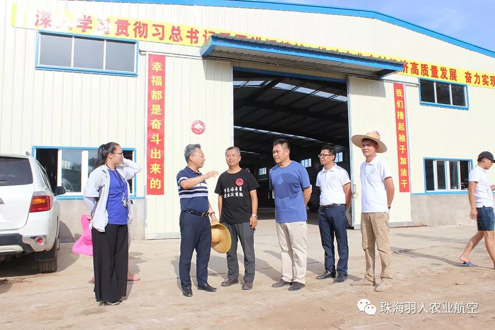 6月21日,广东省农业厅副厅长牛宝俊等领导一行莅临那毛扶贫基地视察工作,观看珠海羽人水稻直播无人机进行水稻种子直播现场演示。