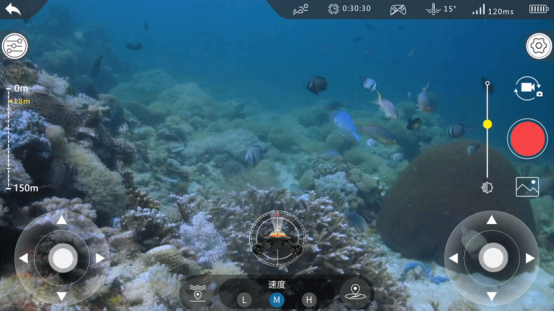 据吉影创始人黄俊平表示,目前由于受技术限制,水下还无法做到无线信号实时传输。泰坦在水下是通过线缆和水面上的WIFI中继端相连,水上则是通过WIFI和操控端相连。水上WIFI连接设计使得用户的操控半径可达200米,水下线缆连接设计使得ROV的潜水深度可达150米,还能保证影像的实时传输。