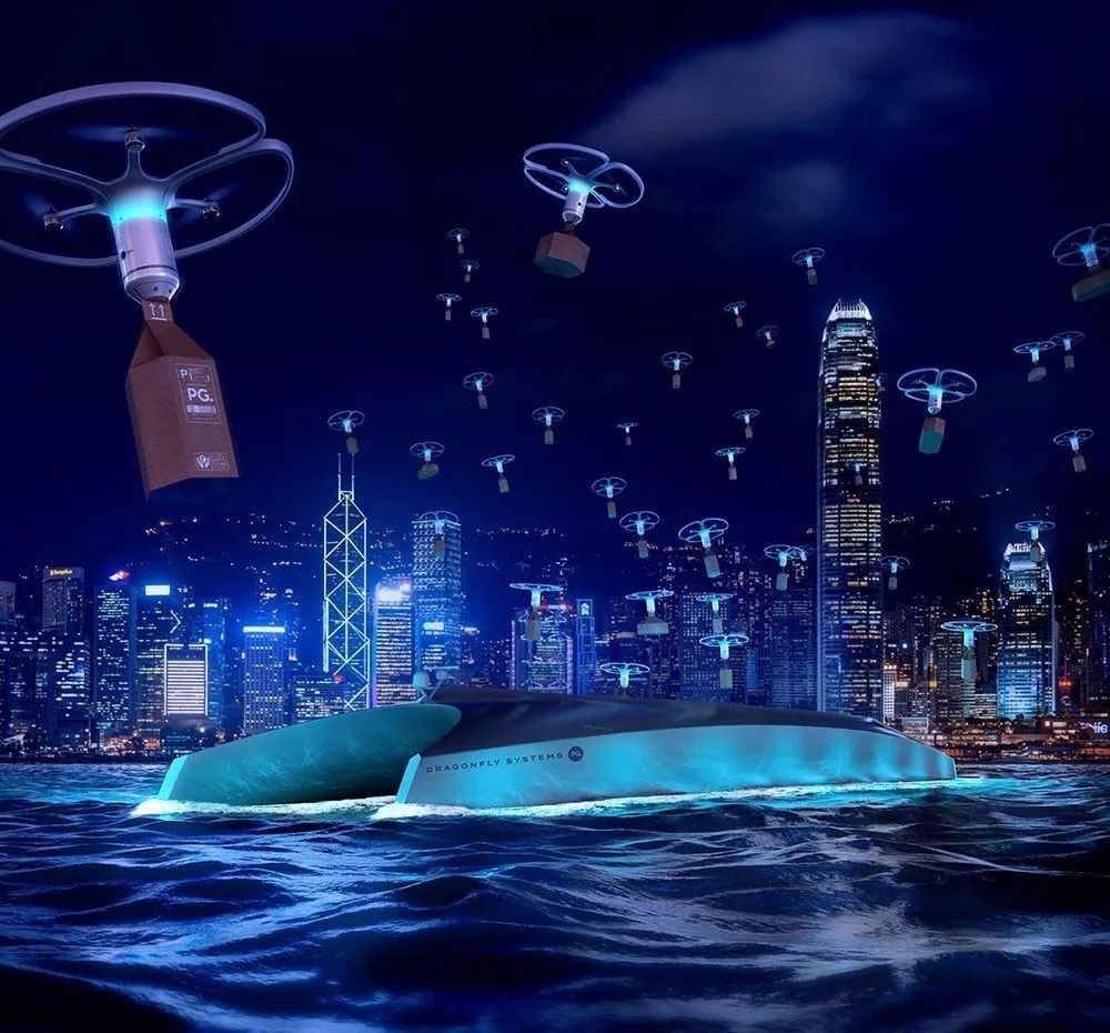 “蜻蜓舰队”与自动驳船共同合作,驳船作为无人机的充电站和调度中心,无人机则用于包裹的运输,它们一般将包裹放在建筑的屋顶或旁侧地面上。