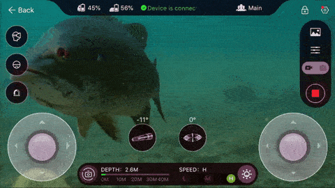 工欲善其事,必先利其器。在这个过程中,为了更好地确定水下视觉盲区的鱼的方位和捕食状态,这些专业的钓鱼者们特地用PowerRay小海鳐进行实时拍摄,将钓鱼实况通过手机App Vision+进行监测,并根据实时画面来随时调整鱼饵的“游动”速度与位置。
