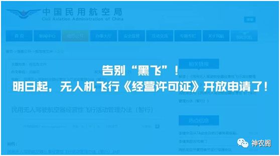 “为规范无人机从事经营性飞行活动,加强市场监管,促进无人机产业安全、有序、健康发展,近日,民航局发布《民用无人驾驶航空器经营性飞行活动管理办法(暂行)》(以下简称《管理办法》),规范了无人机从事经营性通用航空飞行活动的准入和监管要求,并对如何取得经营许可证做出了明确说明。该《管理办法》于2018年6月1日起实施。”