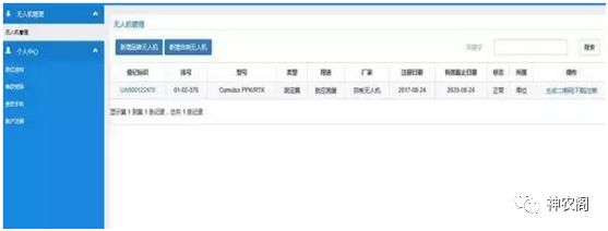 (7)祝贺您已成功完成无人机实名登记,登记信息将显示在‘无人机管理’界面中。