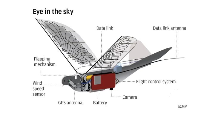 信鸽仿生无人机重约200克、翼展约50厘米,最大飞行时速可达40公里,最长续航时间为30分钟。特制的防震颤软件,可以保证载机摄像头的成像清晰度,从而成为令敌人难以发现的侦察手段。
