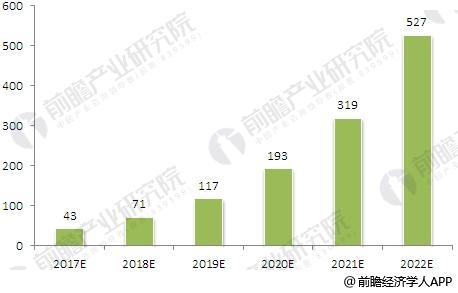 2017-2022年中国工业无人机行业规模预测(单位:亿元)