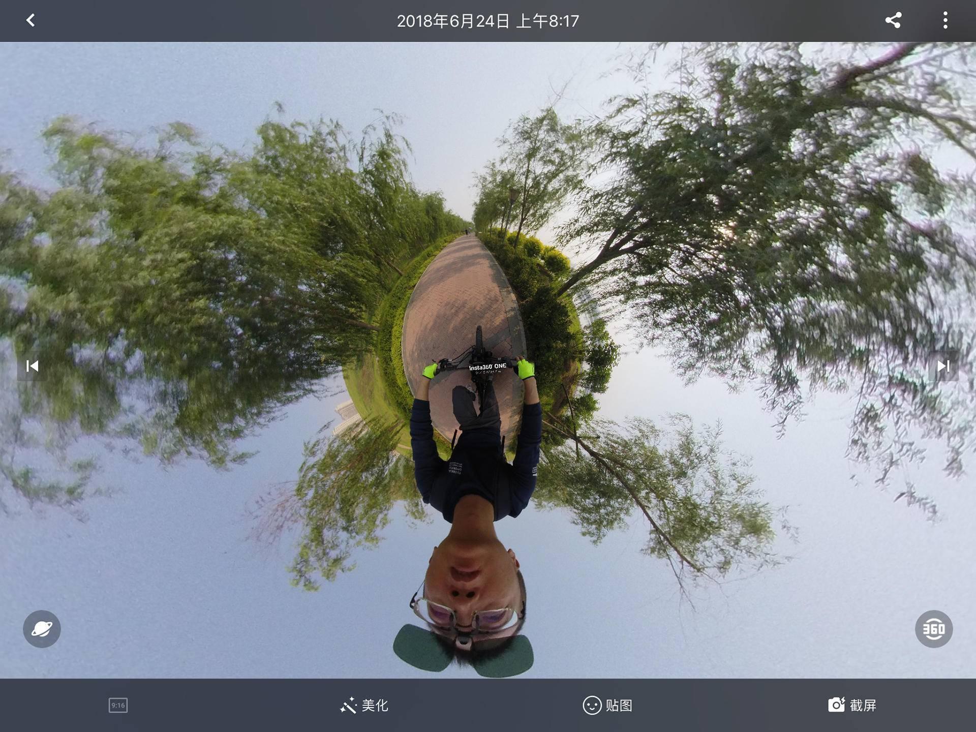 很神奇的说,明明子弹时间套装是一个黑颜色的手柄+自拍杆,但是拍完后的效果如图所示,完全看不到自拍杆去哪里了,Insta360 ONE对自家套件的隐藏功能也是没谁了。