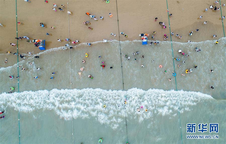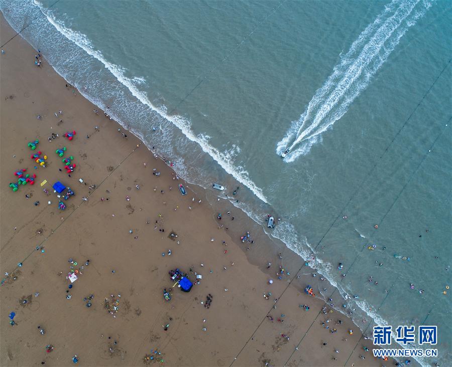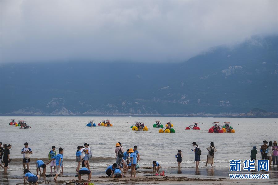6月30日,游客在朱家尖南沙景区游玩。新华社记者徐昱摄