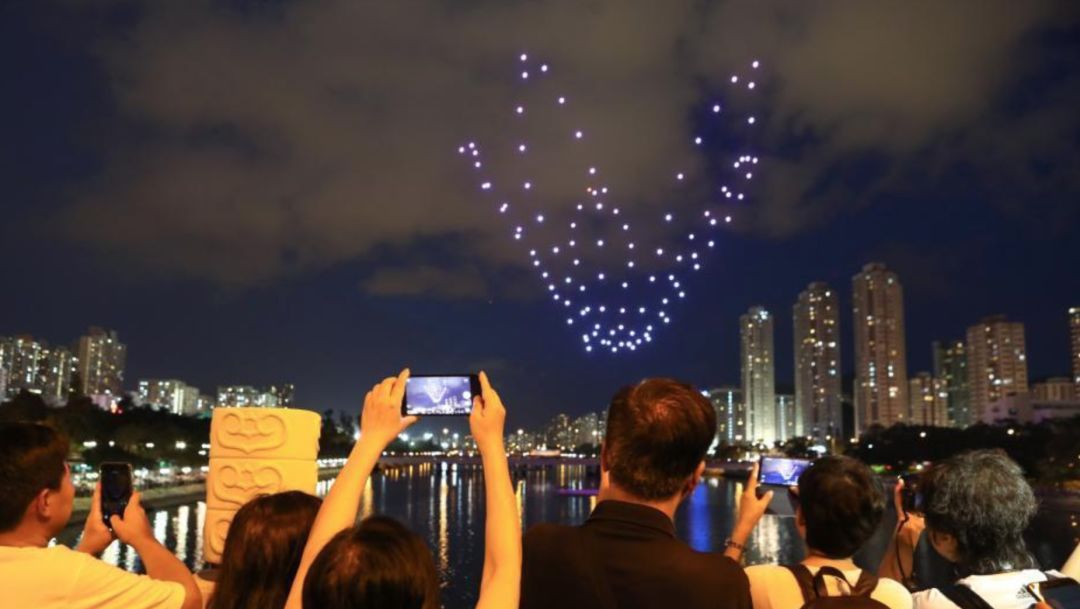 也是香港首次无人机编队天幕光影Show