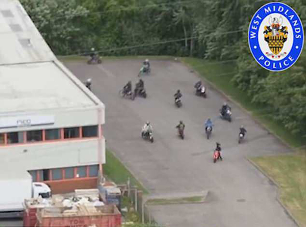 据英国《每日邮报》7月1日报道,近日,在英国西米德兰郡,20多名越野摩托车车手在一个工业园区肆意飙车,引来当地居民不满。在收到大量投诉后,警方使用无人机将这一犯罪画面拍摄下来并及时将这些不法分子逮捕。