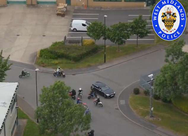 从视频可以看出,在考文垂市的七星商业公园,这些越野摩托车车手在马路上飙车,做一些高难度的特技动作。随后,警察将他们包围并予以伏击。20多人当场被捕,总共9辆越野摩托车被没收,其中7辆车是他们偷来的。