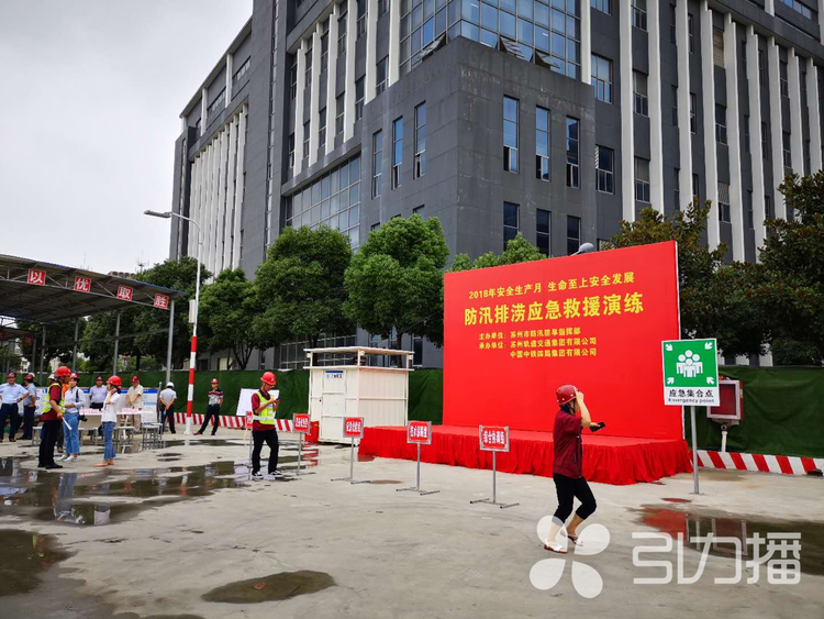 苏州已进入主汛期,为积极应对强降雨可能出现的积涝险情,检验全市防汛排涝应急救援响应机制运行情况,提高水利、轨交、供电等部门抢险队伍高效处置突发汛情的快速反应能力及协同作战水平,检验抢险队伍应对突发汛情的各项战备意识和工作状态。苏州举行防汛抢险实战演练,模拟汛期出现持续强降雨后,发生城市内涝、泵房断电抢修、雨水管道排水不及排险、深基坑开挖土坡失稳、变电站积水等险情,各单位紧急出动抢险、排险和救援。上午10点25分左右,演练模拟强降雨时,第三个演练点轨交5号线长江路站点出现深基坑积水险情,轨交集团派出应急抢险队伍赶往现场,同时调配吊车放下水泵,抽排基坑内积水。