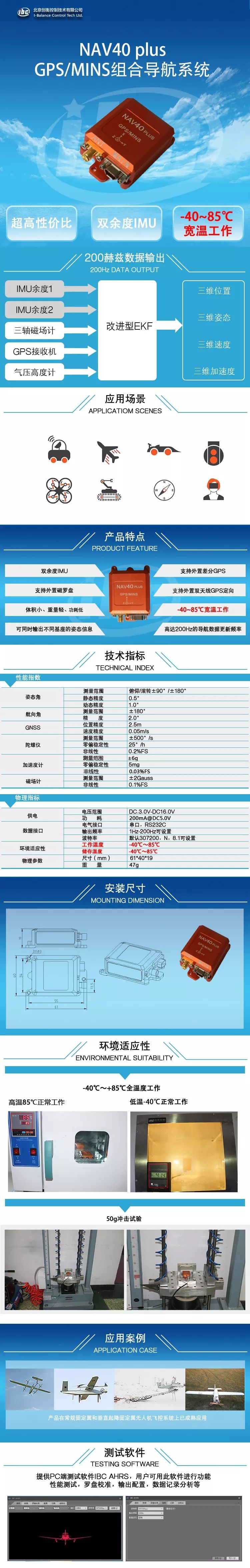 创衡控制在原成熟NAV40微组合导航系统的基础上推出NAV40 plus,更高性价比、更高精度、-40℃~85℃宽温工作、适应更恶劣环境。