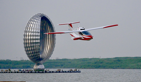 风翎号水陆两栖轻型运动飞机滴水湖试飞。