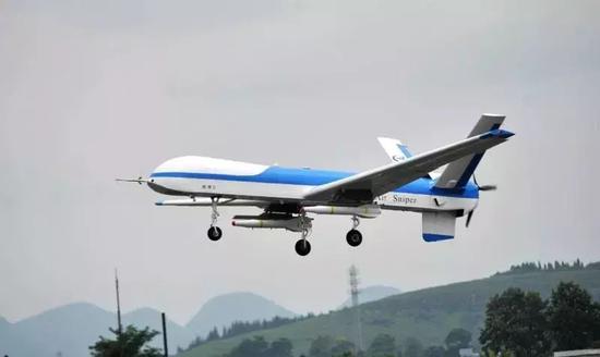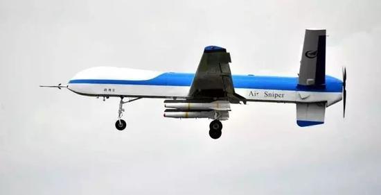 ▲“鹞鹰”Ⅱ察打一体无人机具有航时长、挂载能力强、打击精确、全天候飞行等特点。