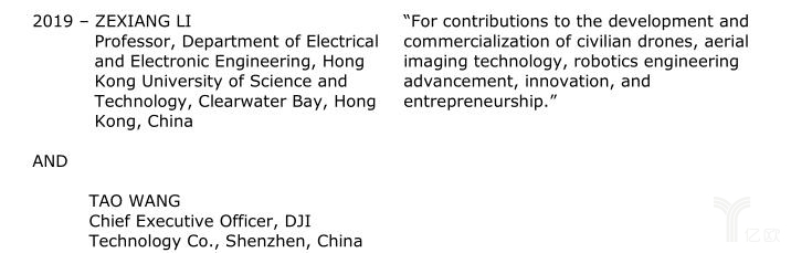 IEEE评审专家委员会表示,颁发这一奖项旨在表彰大疆创新“为民用无人机的发展及商业化、航空影像技术及机器人技术的进步所做出的杰出贡献。”