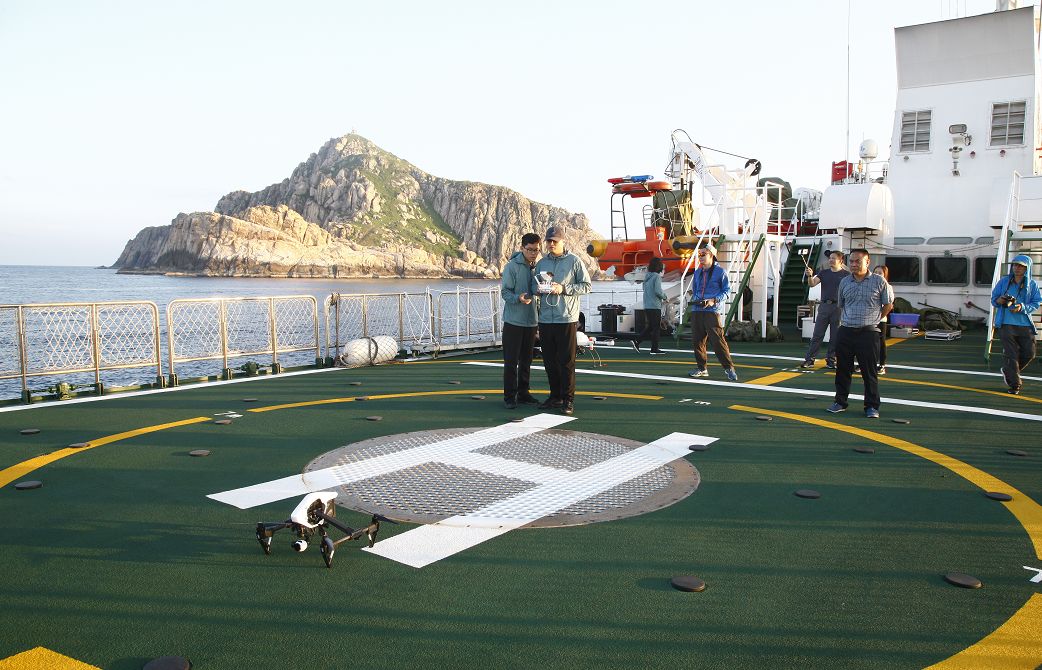在海南省海监总队周密部署安排下,“中心”周涛主任带领“中心”技术人员一行搭乘中国海监2166执法船赴文昌七洲列岛开展海岛航拍巡查及岛碑勘查维护工作。