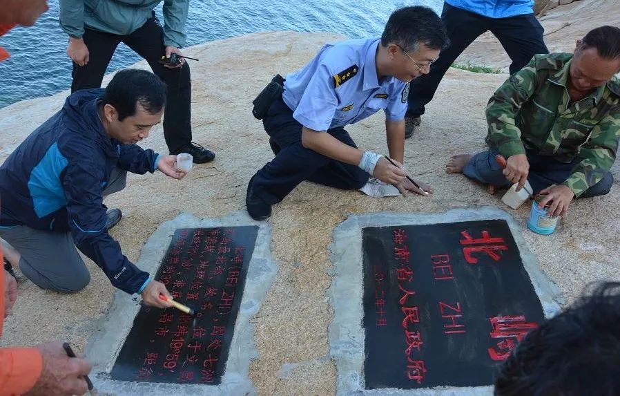 登岛勘察岛碑维护工作照