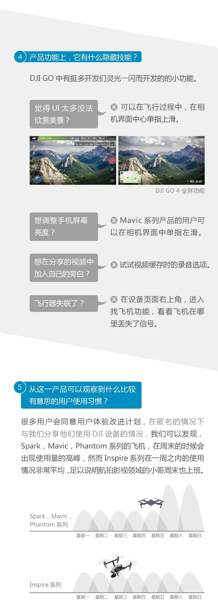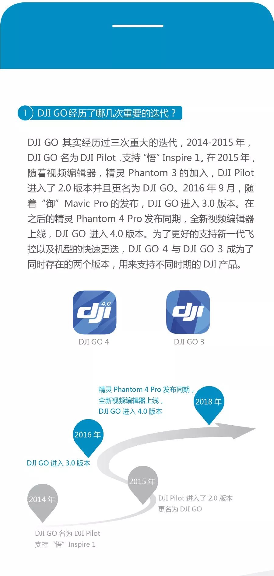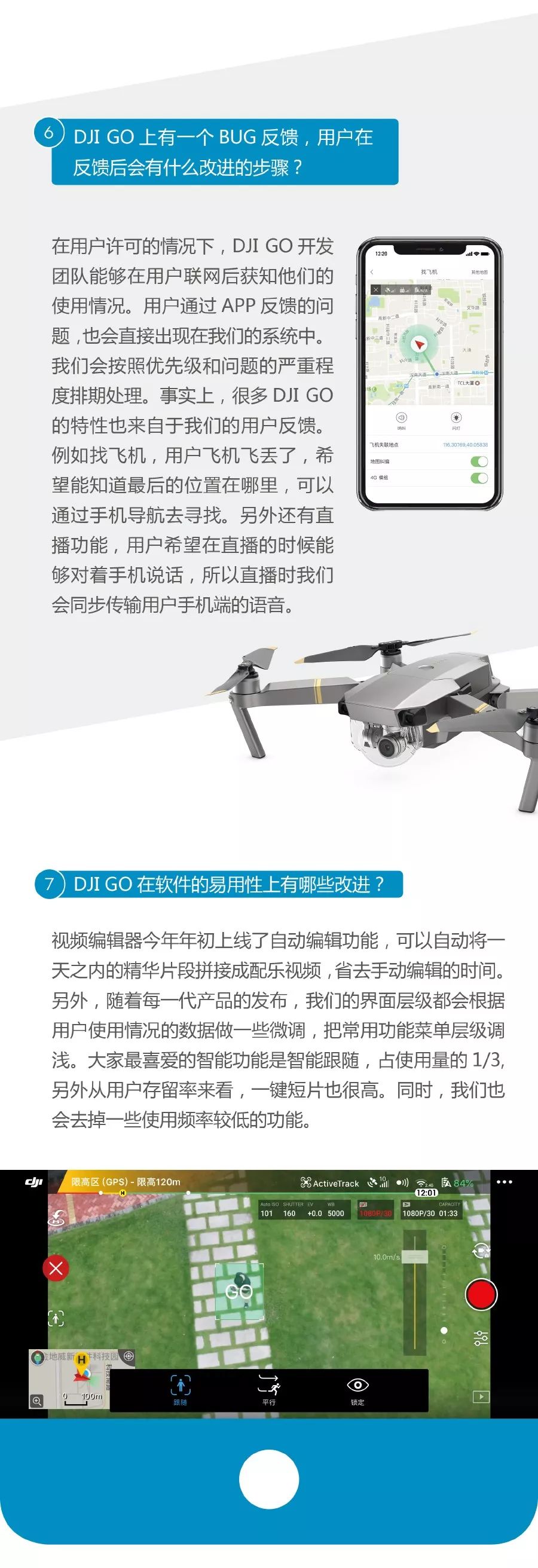 DJI GO 花了 4 年的时间改进和更迭,它的产品经理说这不会成为一个无所不包的大平台,而是努力做一个高效、稳定的飞行工具。