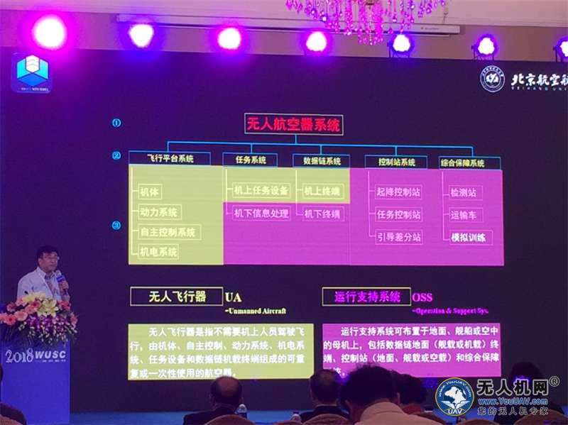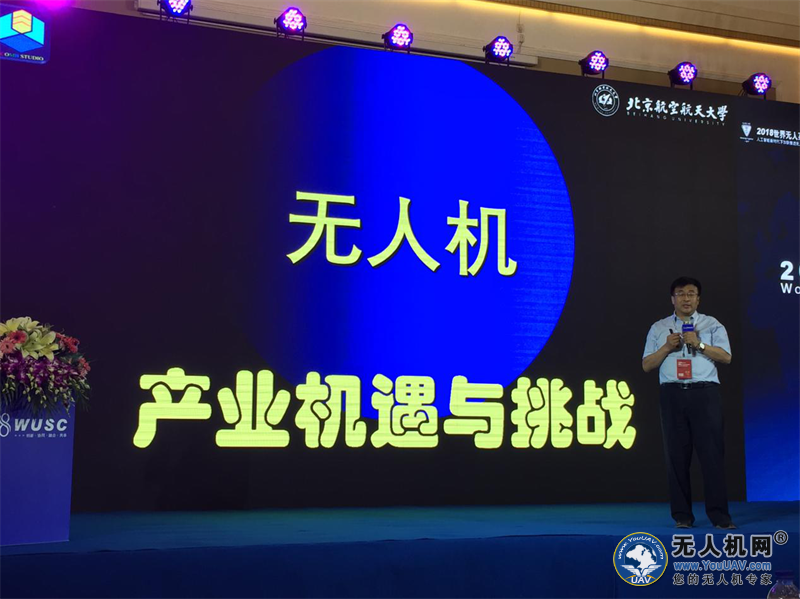 由北京航空航天大学教授,无人系统研究院院长王英勋,进行“无人机发展机遇与挑战的演讲”。