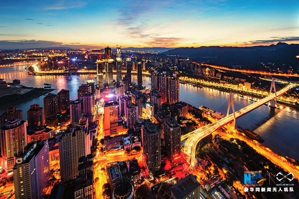 夏至已过,小暑将至,往后的天气将越来越炎热,重庆城市之美也在渐变的气候里发生着改变。图为清晨五点二十一分,无人机航拍重庆朝天门,璀璨华灯仍在闪耀。新华网发(龚祖章 摄)