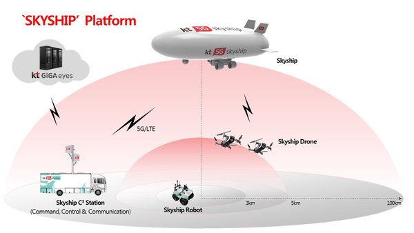 韩国电信计划在2020年之前完成其基于 5G 的灾难安全平台,配备第三代 Skyship 飞机。新平台将利用韩国电信的 5G 计划,具体来说,韩国电信计划推出该国最大的 5G 商业宽带网络,分别在 3.5 GHz 和 28 GHz 频段中使用 100 MHz 和 800 MHz,这些频段是该公司日前在政府5G频谱拍卖中购得。