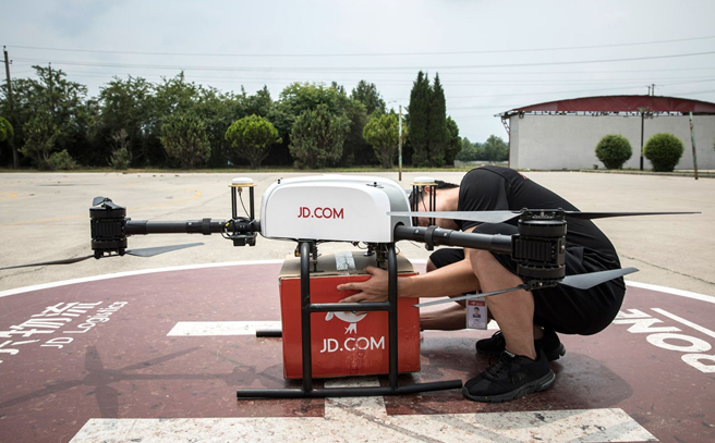 京东正与世界各地的公司竞速,开发具有更强运力、更长航程、可靠性更高的无人机,以实现大规模货物交付,并解决快递员所面临的成本高昂的“最后一英里”问题。与其他地区不同的是,中国具备无人机运输所需的全部优势条件,包括监管环境、基础设施以及拥有全球最大电子商务市场。