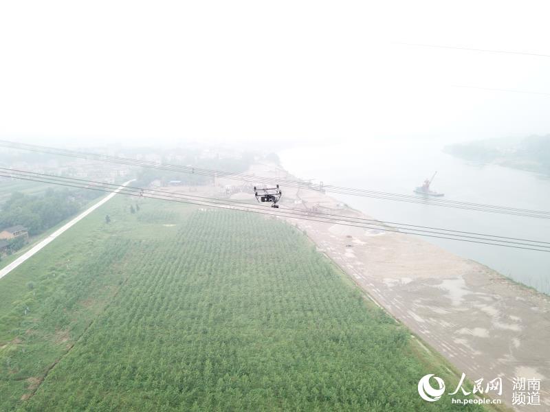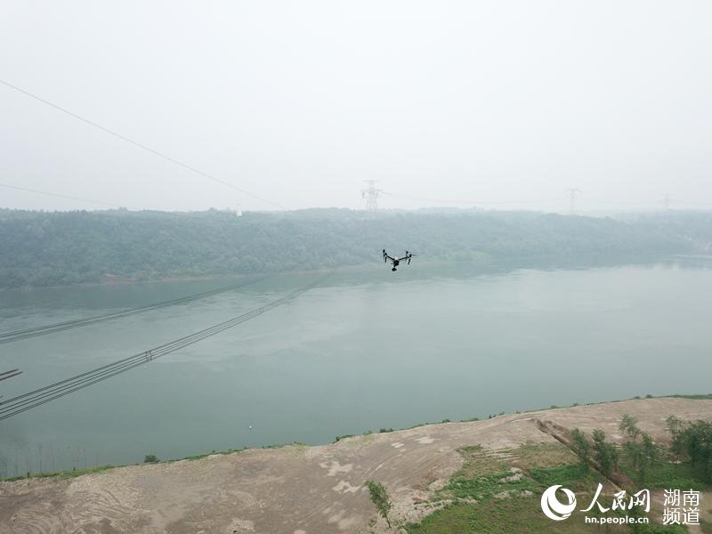 7月6日,国网湖南输电检修公司在位于湖南省常德市桃源县的正负800千伏祁韶线4159号至4160号杆塔之间的江面利用无人机对该线路进行首次跨江巡视作业,及时发现并处理线路运行中存在的安全隐患,保证迎峰度夏期间,湖南全省用户享受清洁能源带来的凉爽。
