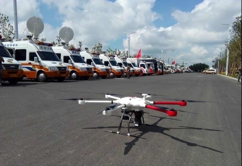 现场开展了微波电台通联、卫星通信、无人机应急救援多个科目的演练,当发生突发性灾害事故的时候,慧明捷无人机可第一时间快速到达救援现场,充分展现无人机的机动性、灵活性,然后利用高清变焦摄像云台系统进行高空侦察,采集现场的事故画面,实时回传到指挥中心的大屏,领导根据掌握的第一手资料制定高效的救援作战计划。
