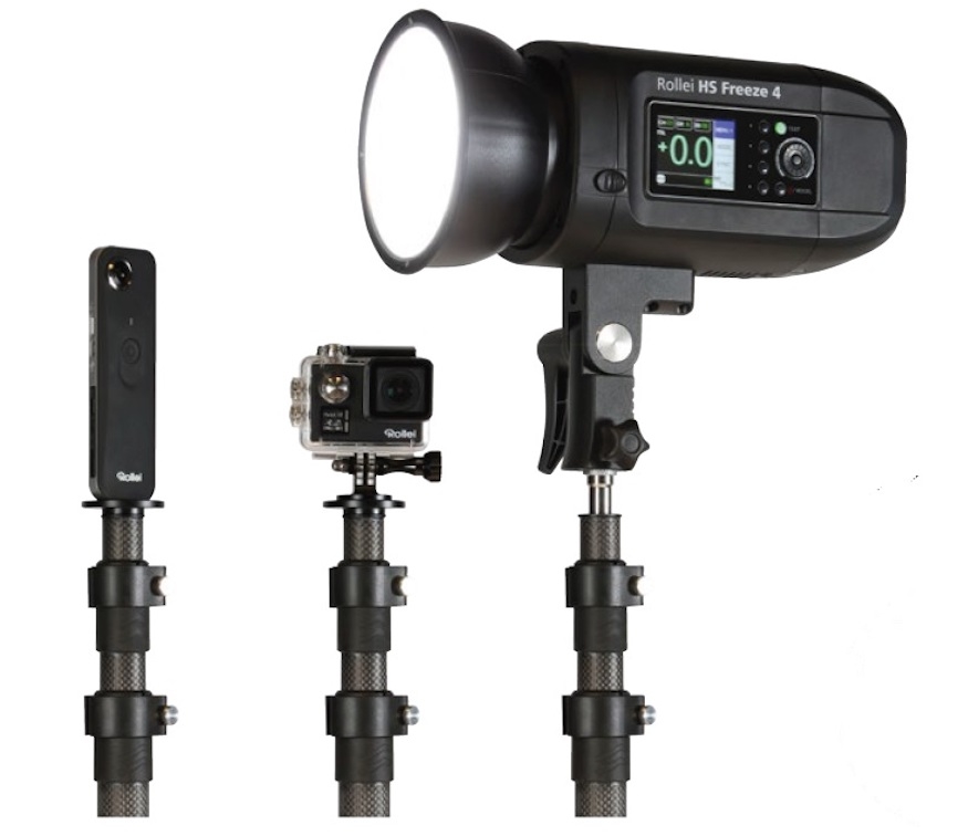 Rollei Skytrip 脚架能兼容大部份时髦 Action Cam 和全景相机。