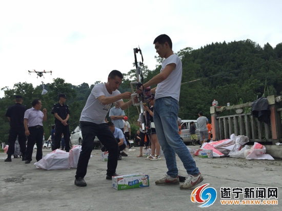 由于通往黑水浩村唯一通道桥梁冲毁,7月12日中午12时,水流量为12300立方米,县镇村干部、官兵们、电力等仍坚持岗位,齐心协力开展救援,目前,第一批救灾物资已通过无人机运送至黑水浩村。其中,民政局物资运送,包括矿泉水8940瓶、面包35300个、棉被600床,牛奶3120盒,饼干1000盒,方便面120件等救灾生活物资。(刘昌松)