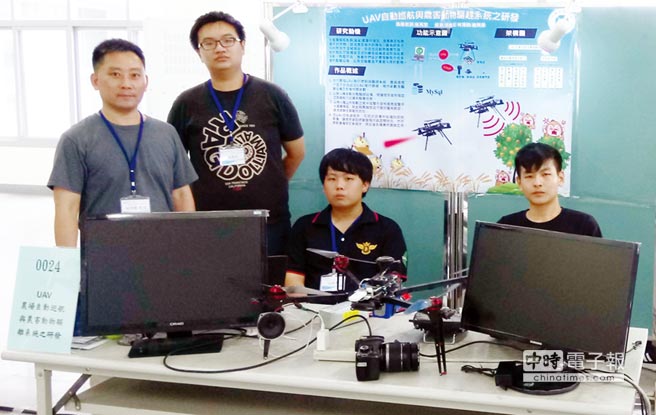由于猕猴及鸟害所造成的农损近年来日益严重,利用稻草人、放鞭炮等驱赶,效果不彰,因此朝阳科技大学资讯工程系学子林鸿钧、张逸宏、施隽彦等三人研发「UAV自动巡航与农害动物驱赶系统」,首创无人飞行器搭载驱离设备,荣获2018农业光电机器人自造大赛银牌,得奖团队可望获推荐至南科AI ROBOT自造基地进行技术开发及参与创业研习,受到注目。