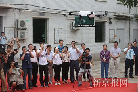 无人机飞抵预设地点投递成功。新京报记者 侯少卿 摄