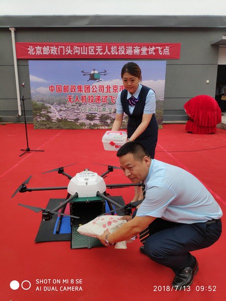 7月13日,北京邮政在门头沟斋堂邮政支局成功进行了无人机山区投递试飞。