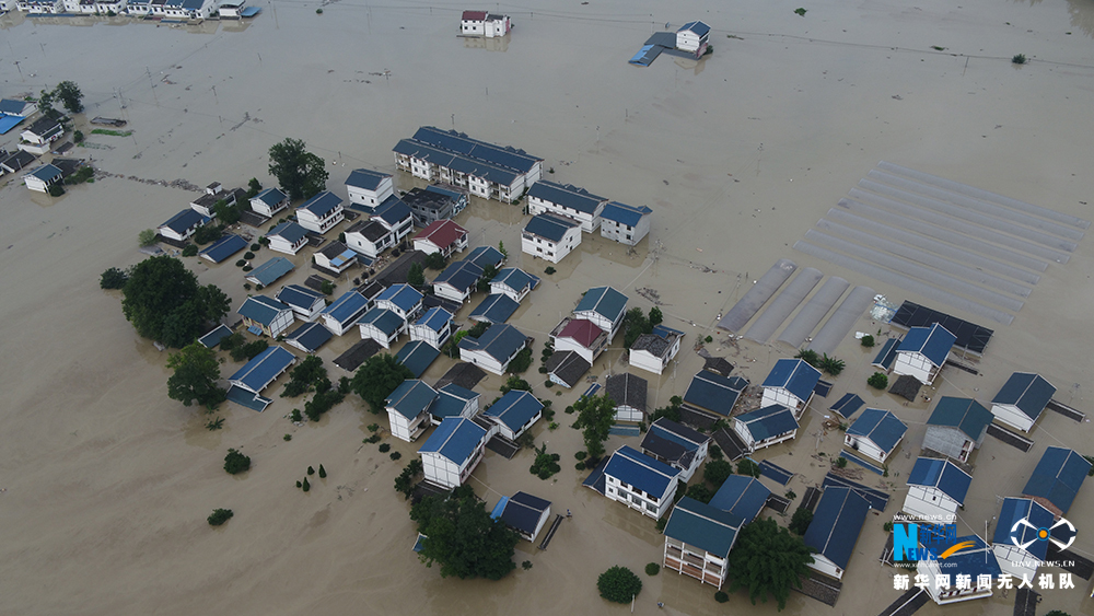 7月12日,受上游强降雨及来水影响,重庆市长江、嘉陵江、涪江均出现明显涨水过程,多地出现超警戒水位洪水。图为重庆市潼南区双坝村被洪水淹没。新华网 郑杰 摄