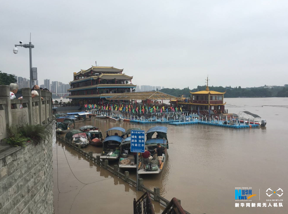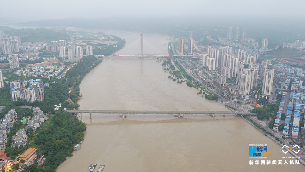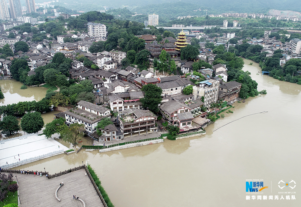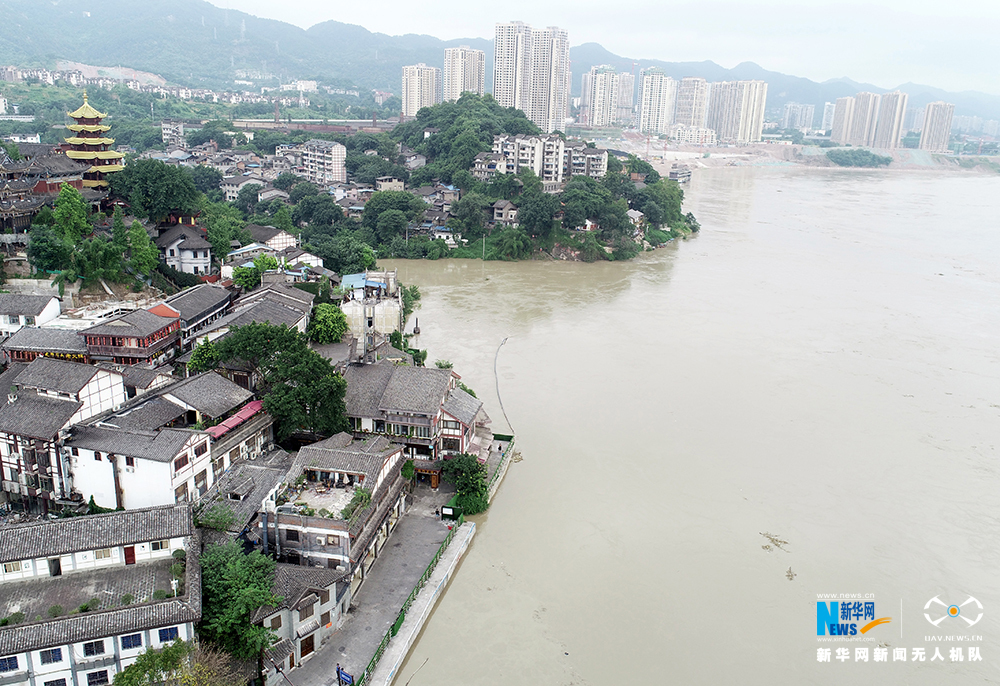 7月12日,受上游强降雨及来水影响,重庆市长江、嘉陵江、涪江均出现明显涨水过程,多地出现超警戒水位洪水。图为重庆市合川区江面情况。新华网发(余启华 摄)
