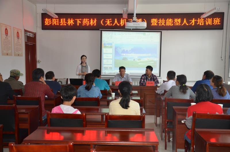 县科技服务中心通过政府招标、企业化运作的模式与彭阳县壹珍药业有限公司考察引进全自动播种无人机。并于7月12日在彭阳县中药材产业科技人才培养基地举办“彭阳县林下药材(无人机飞播)暨技能型人才培训班”。宁夏艾菲悦信息科技发展有限公司负责人郭燕及技术员谢金城就无人机工作原理、飞播操控技术为我县中药材种植技术员开展专题讲座,随后又邀请县委常委、城阳乡党委书记刘旭等人前往城阳乡杨坪村油坊队千亩仿野生中药材种植示范基地进行实地操作展示培训。