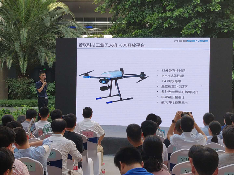 若联科技CEO金洁向大会嘉宾介绍了公司的发展历程以及工业无人机I-800开放平台、实时群控技术等。随着无人机作业自动化和数据处理智能化时代的到来,若联科技工业无人机I-800开放平台最大的特性是极度开放,多机群控应用接口(API)包含无人机位置、高度、速度、云台角度、相机变焦、相机拍摄、电池充换电、多机集群控制、图像数据无限下载、避障雷达、着陆模块、多RTK系统等控制API,可以赋予客户深度控制的能力,从而实现全自动化。