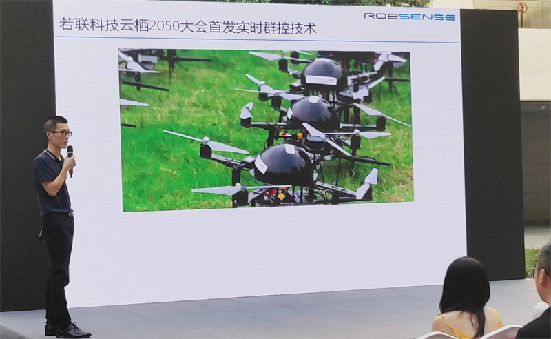 早在5月26日时若联科技在杭州云栖小镇使用46架RST450无人机进行编队表演,通过无人机整齐排列组合,拼成“2050”与“RST”等字样赢得现场观众惊呼不断。同时,云栖2050大会的无人机编队首秀让若联科技成为了全球完全自主知识产权掌握集群无人机表演技术的4家商业企业之一,而且是唯一一家掌握实时集群控制技术的商业公司。经过三年的历练,若联科技已全面掌握无人机飞行控制、通信链路、集群控制软件、精准定位技术,为实现无人机2.0时代全自主化作业而准备着。