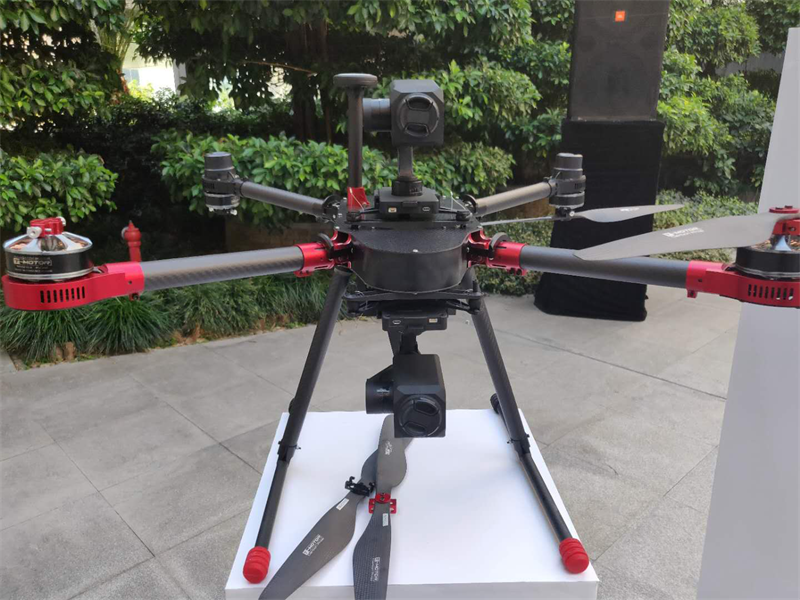 I-800开放平台具备多种光学相机可拆卸、机臂可折叠设计,RTK差分厘米级定位替代罗盘实现航向控制,可配有23倍变焦相机自动追踪目标。目前,I-800开放平台的客户涵盖特种监测、公共安全、智慧城市等行业领域。据金洁透露,若联科技将于2018年11月推出新一代无人机开放平台,载荷性能全面升级。