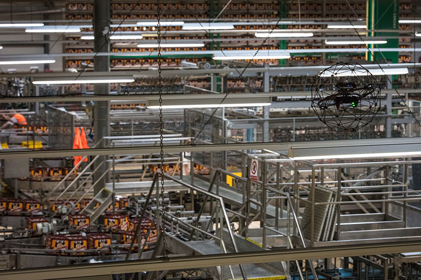 捷克啤酒公司Pilsner Urquell早前与Flyability的捷克分销商Drony SITMP合作,利用 Elios无人机检查装瓶厂的建筑结构, 2 星期内便完成检查工作,也无需为了检查暂停工厂运作。