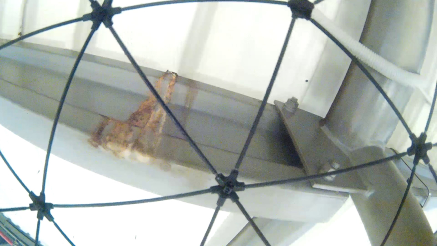 Elios 无人机发现天花板出现生锈情况。
