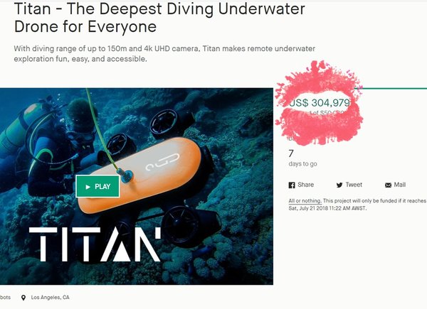 水下无人机泰坦众筹总额已破30万美金